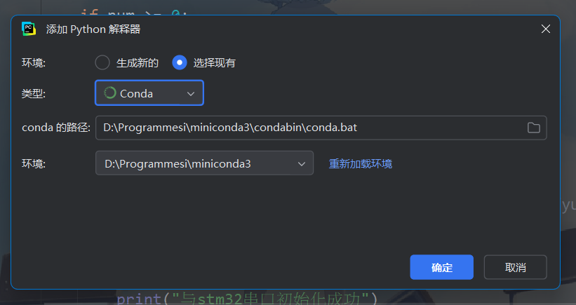 然后选择安装的Conda的路径下的conda.bat文件,就可以自动读取到Conda内的虚拟环境,相对路径一般如下图所示