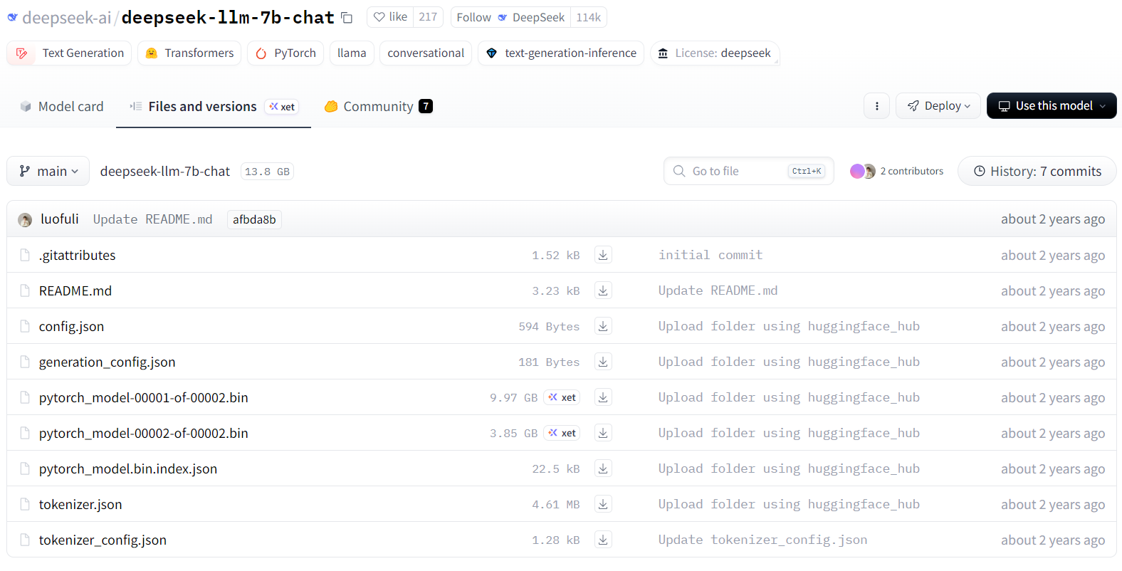 在hugging face官网下载所需的模型文件(不局限于Deepseek的7B模型)