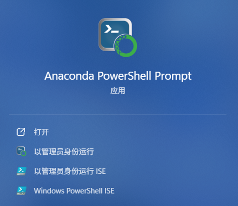 安装后,打开Anaconda Powershell Prompt应用,新建一个虚拟环境